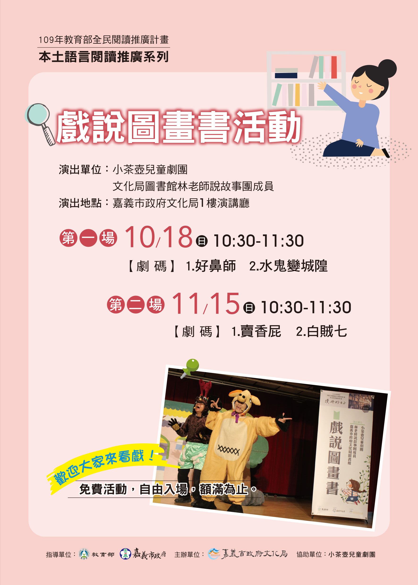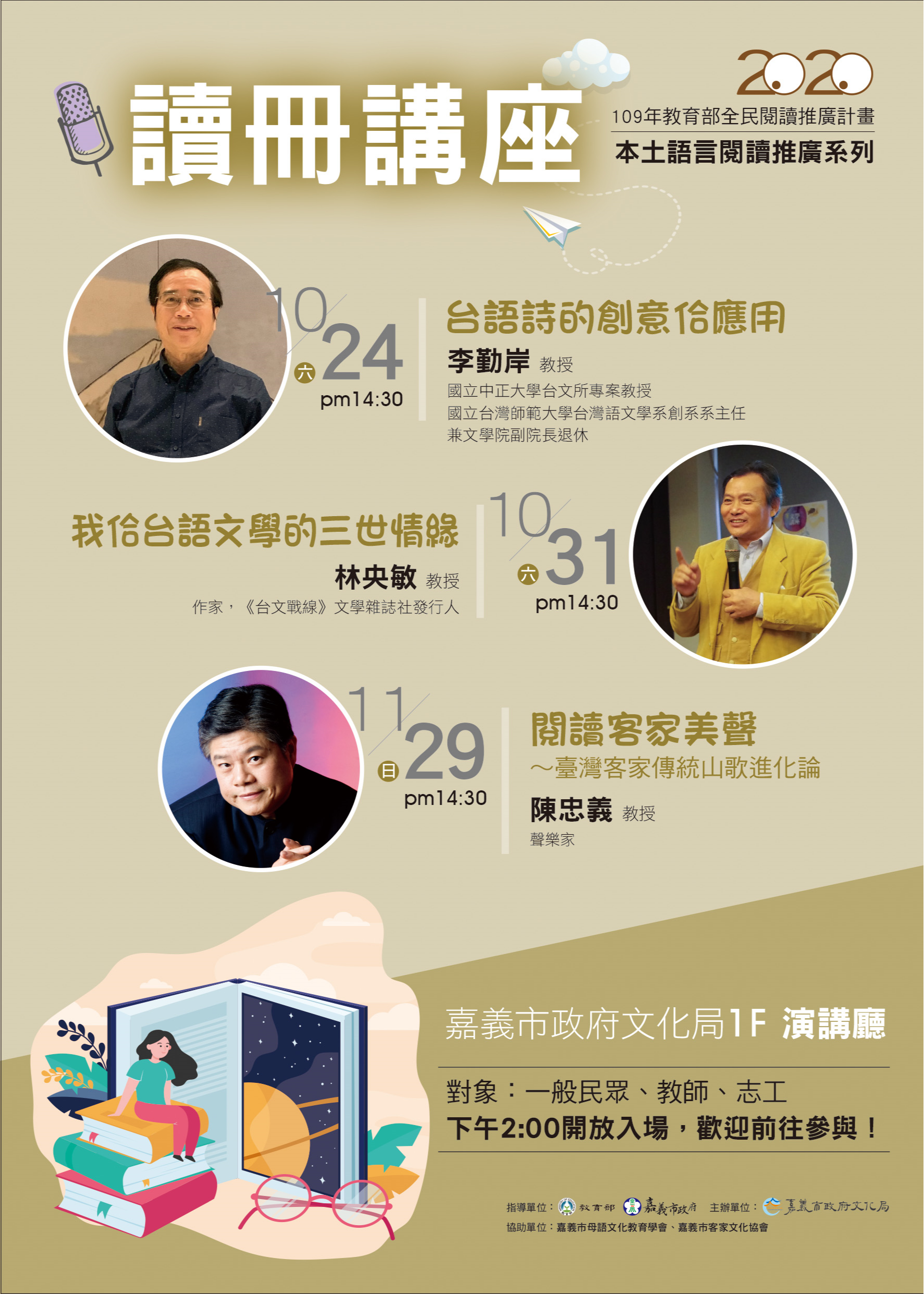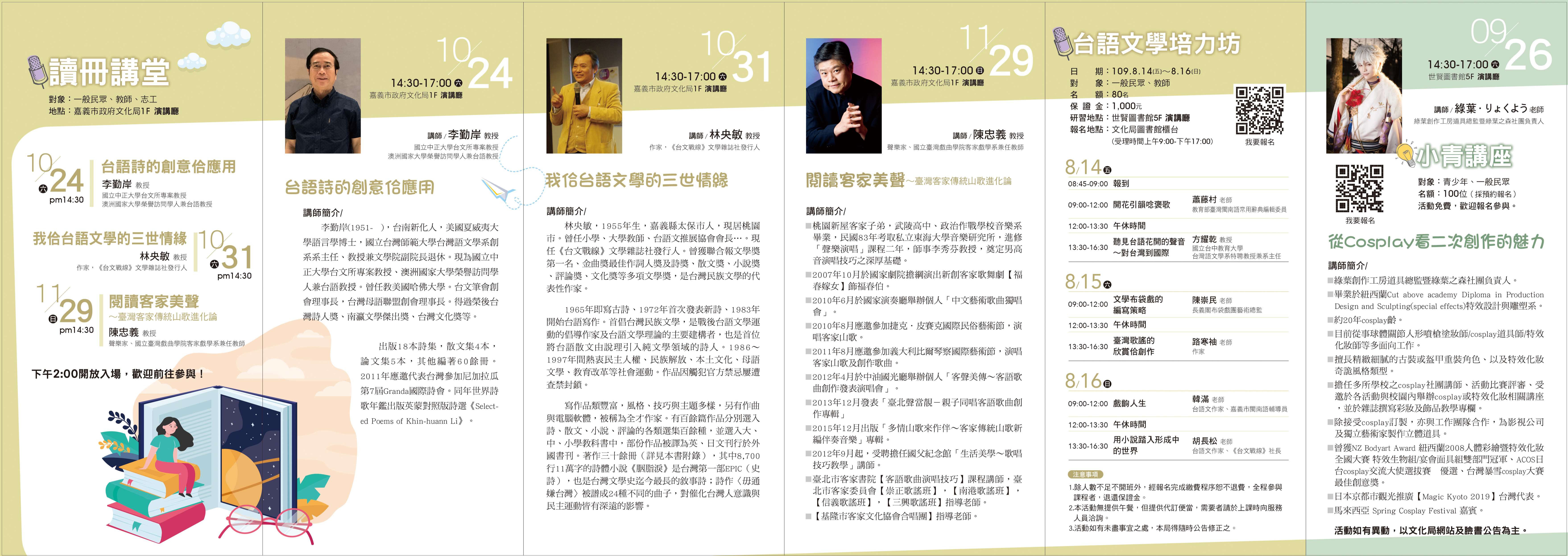 文化局辦理109年多元閱讀與本土語言閱讀推廣計畫,鼓勵老師踴躍參與。(活動請詳閱附件)