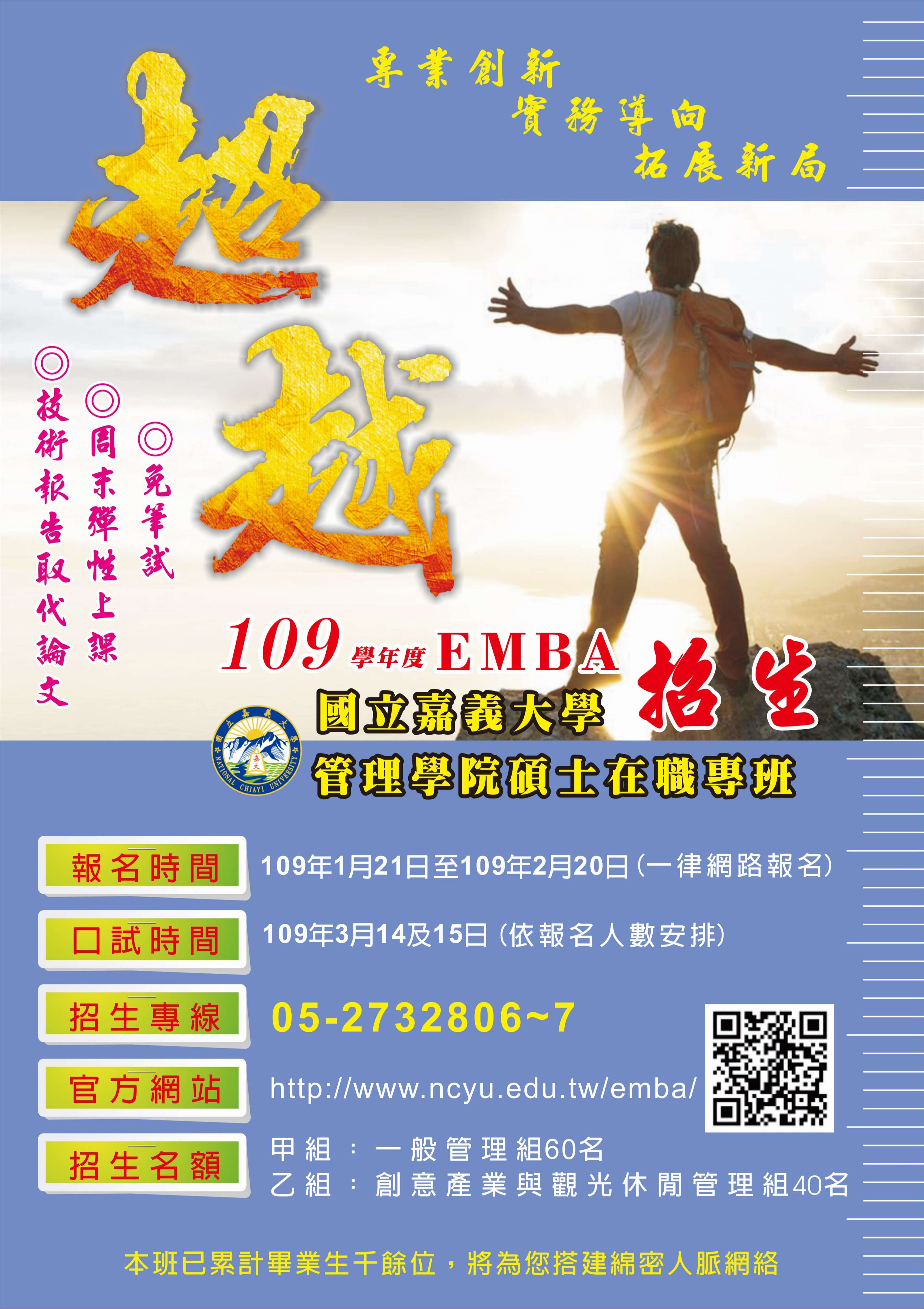 主旨:轉知國立嘉義大學管理學院碩士在職專班109學年度招生資訊,
