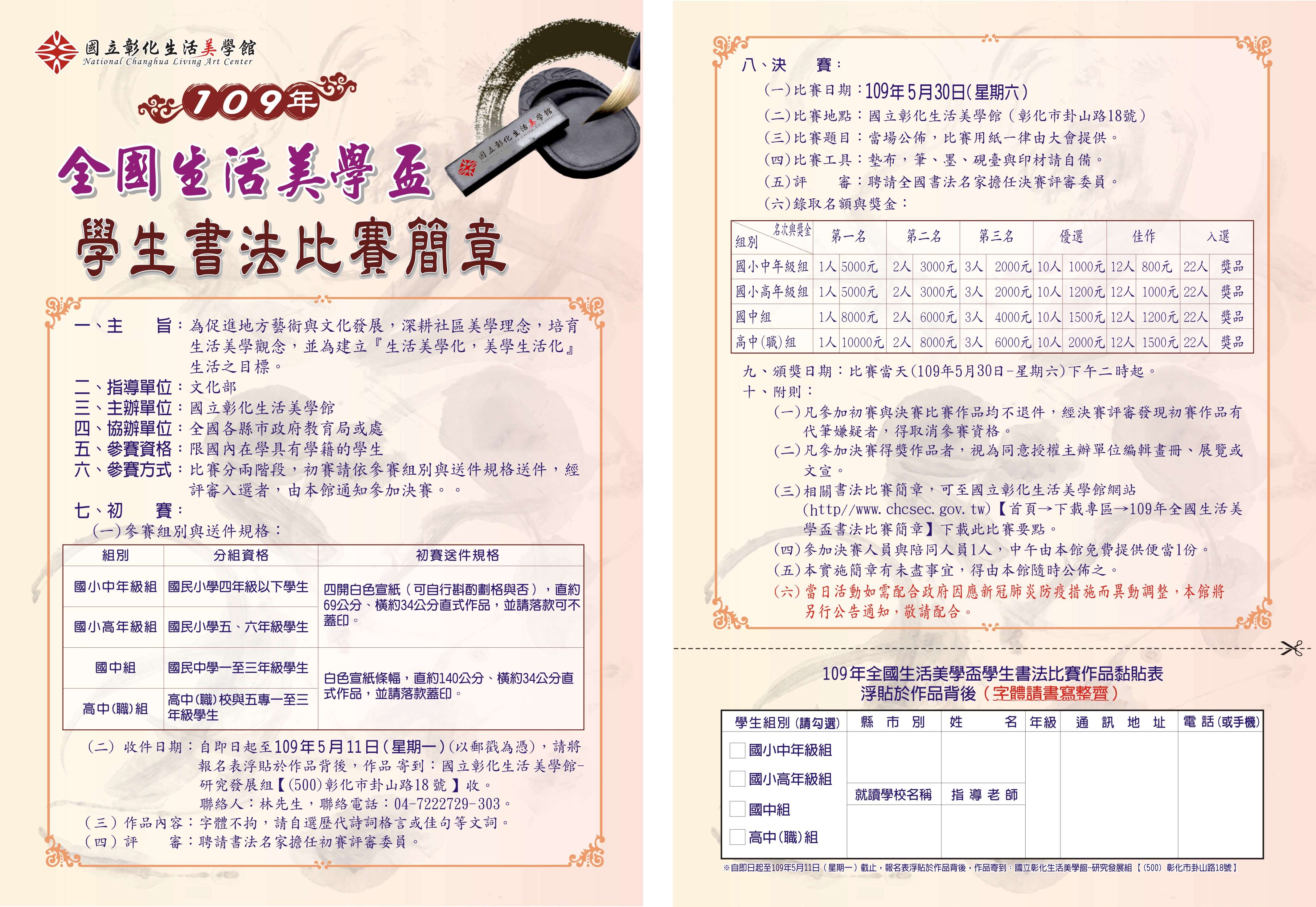 三、經評審入選者,由該館通知參加決賽,時間為109年5月30