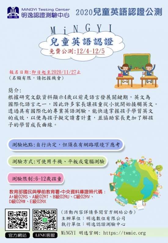 二、認證科目:兒童英語認證 MEC - MiNGYI English