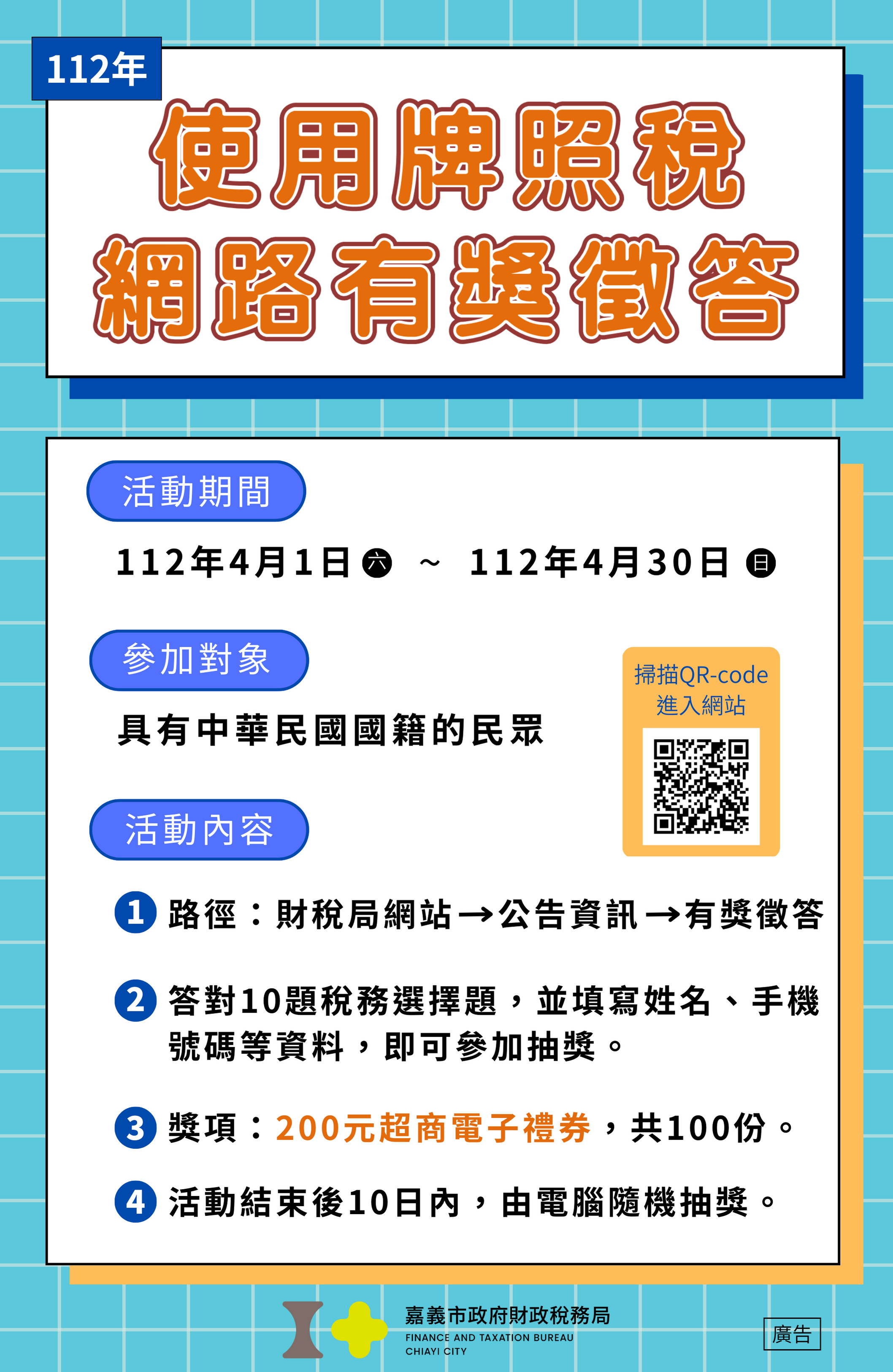 (一)112年使用牌照稅於4月1日開徵,繳納期限至4月30日