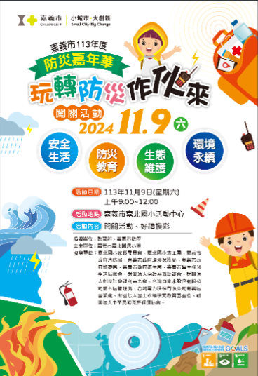 主旨:113年11月9日(星期六)辦理「113年度防災嘉年華-玩轉防災作伙來」,請各校踴躍參加。