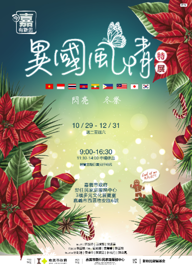 一、本市新住民家庭服務中心為宣導推廣尊重多元文化,「今 嘉有新思.異國風情特展」開放團體參觀,藉由受培訓之 新住民及新二代以真人文化導覽,並透過實際接觸異國文 物,增進民眾對不同國籍文化的瞭解,促進尊重多元文化 之全球公民素養。