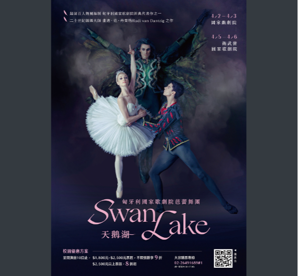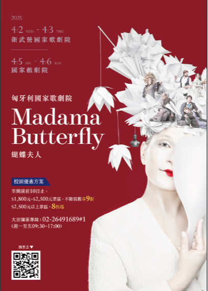 說明: 一、齊名世界頂尖劇院「匈牙利國家歌劇院」將於2025年4月攜 旗下歌劇、芭蕾舞團,帶來經典歌劇《蝴蝶夫人》與芭蕾 舞劇《天鵝湖》,分別於國家戲劇院及高雄衛武營國家歌 劇院登場,此次巡演將比照歐洲規模,動員超過百人製作 團隊,並挑戰一週同時於北高兩地演出兩部作品,為台灣 觀眾獻上歌劇與芭蕾藝術的最高水準。誠摯推薦各級學校 師生前來觀賞精彩演出,感受藝術魅力,並藉此機會增進 對歌劇和芭蕾舞的了解。相信這將會是非常難得的學習和 文化體驗。 二、表演場次: (一)歌劇《蝴蝶夫人》台北國家戲劇院1、2025/4/5(六)14:30、19:30 2、2025/4/6(日)14:30 (二)歌劇《蝴蝶夫人》高雄衛武營國家歌劇院 1、2025/4/2(三)14:30 2、2025/4/3(四)14:30、19:30 (三)芭蕾舞劇《天鵝湖》台北國家戲劇院 1、2025/4/2(三)19:30 2、2025/4/3(四)13:00、19:30 (四)芭蕾舞劇《天鵝湖》高雄衛武營國家歌劇院 1、2025/4/5(六)13:00、19:30 2、2025/4/3(日)13:00 三、表演介紹: (一)【蝴蝶夫人】 1、《蝴蝶夫人》為義大利作曲家普契尼創作的經典歌 劇,以日本年輕藝伎「蝴蝶夫人」秋秋桑與美國軍官 平克頓之間的悲劇愛情故事為主軸。秋秋桑為愛犧牲 一切,卻遭遇背叛,最後選擇以生命捍衛尊嚴。於 1904年2月17日在米蘭史卡拉歌劇院推出歌劇版首演, 卻以慘敗收場,普契尼為此進行大幅修改,在5月於布 雷西亞重新上演,獲得了極大成功,此後,作曲家依 舊三度修訂,其中最後的第五版成為目前於世界各地 廣泛演出的版本,也是匈牙利國家歌劇採用的版本。 2、匈牙利國家歌劇院的《蝴蝶夫人》,於2000年由當代 匈牙利最具國際聲望的大導演Miklós Gábor Kerényi 75 執導,二十多年來上演不墬,廣受觀眾歡迎,亦曾受邀於世界各地上演。 (二)【天鵝湖】 1、匈牙利國家歌劇院芭蕾舞團是匈牙利唯一的古典芭蕾 舞團,每年推出豐富的經典和現代舞蹈作品,獲得國 際一致好評;每個樂季推出約100場演出,除了以精湛 的古典芭蕾技巧呈現引人入勝的大型舞劇之外,也有 當代舞蹈大師的新創作品、或結合馬戲的元素的跨界 型態,深受觀眾喜愛。 2、柴可夫斯基的首部芭蕾作品《天鵝湖》是許多芭蕾愛 好者最喜愛的經典作品之一。這個動人的俄羅斯浪漫 童話,講述一位王子與一位因詛咒而變成天鵝的少女 之間的愛情故事,由同一位芭蕾舞者同時扮演純潔無 辜的白天鵝奧黛特和誘惑狡詐的黑天鵝奧狄兒,使劇 情更加精彩。匈牙利國家歌劇院芭蕾舞團的《天鵝 湖》,自2015年以來已成為匈牙利國家歌劇院芭蕾舞 團的招牌劇目,以豪華盛大的舞者陣容、華麗精美的 舞台與服裝設計聞名。 四、購票優惠方案及票價: (一)校園團體優惠方案: 1、至各場次前10日止,$1800元票區~2500元票區,不限 張數,享9折。$2500元以上票區,2張(含)以上享82 折,4張(含)以上享8折。 2、專屬訂購連結:https://bit.ly/3OE3xTp