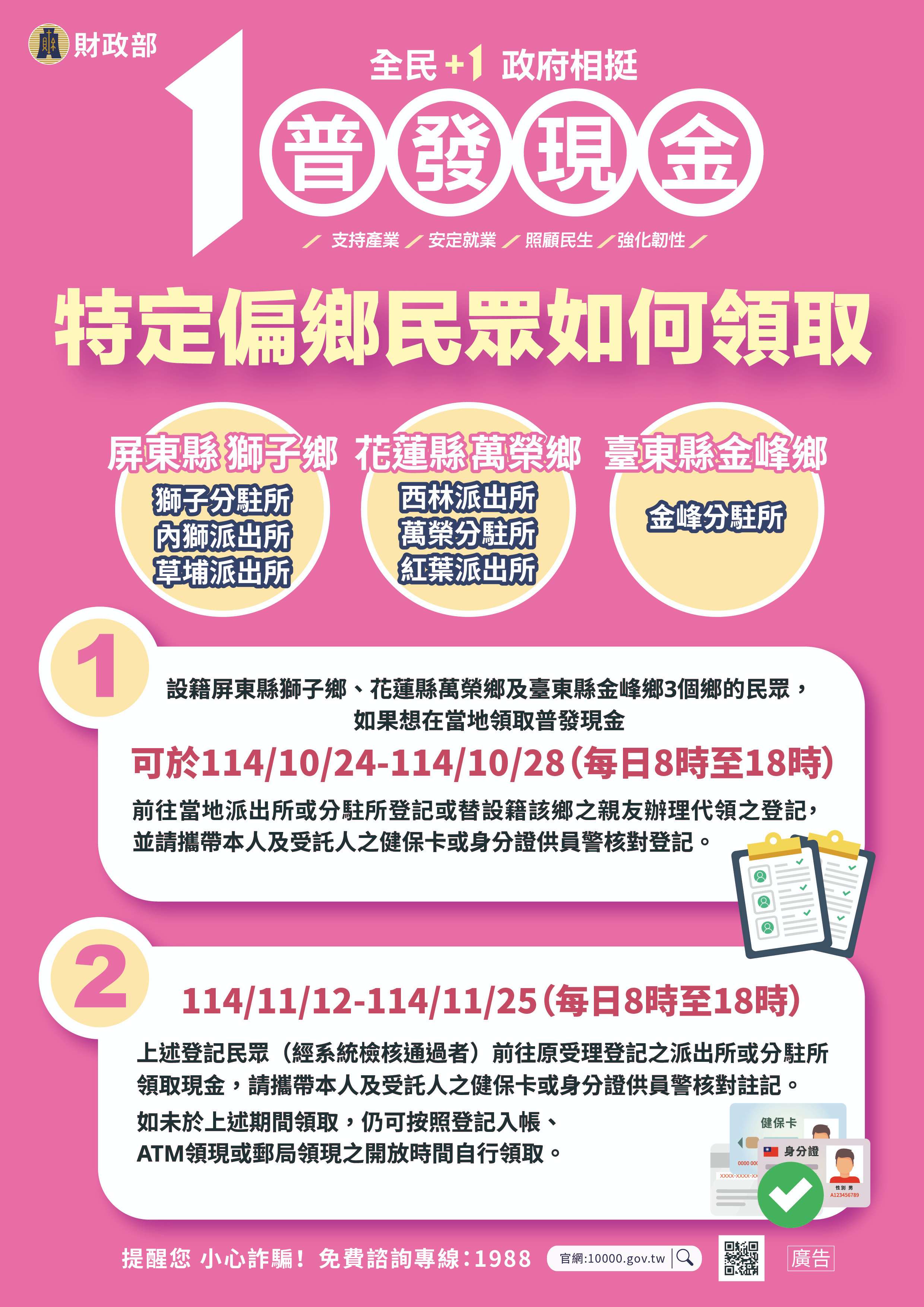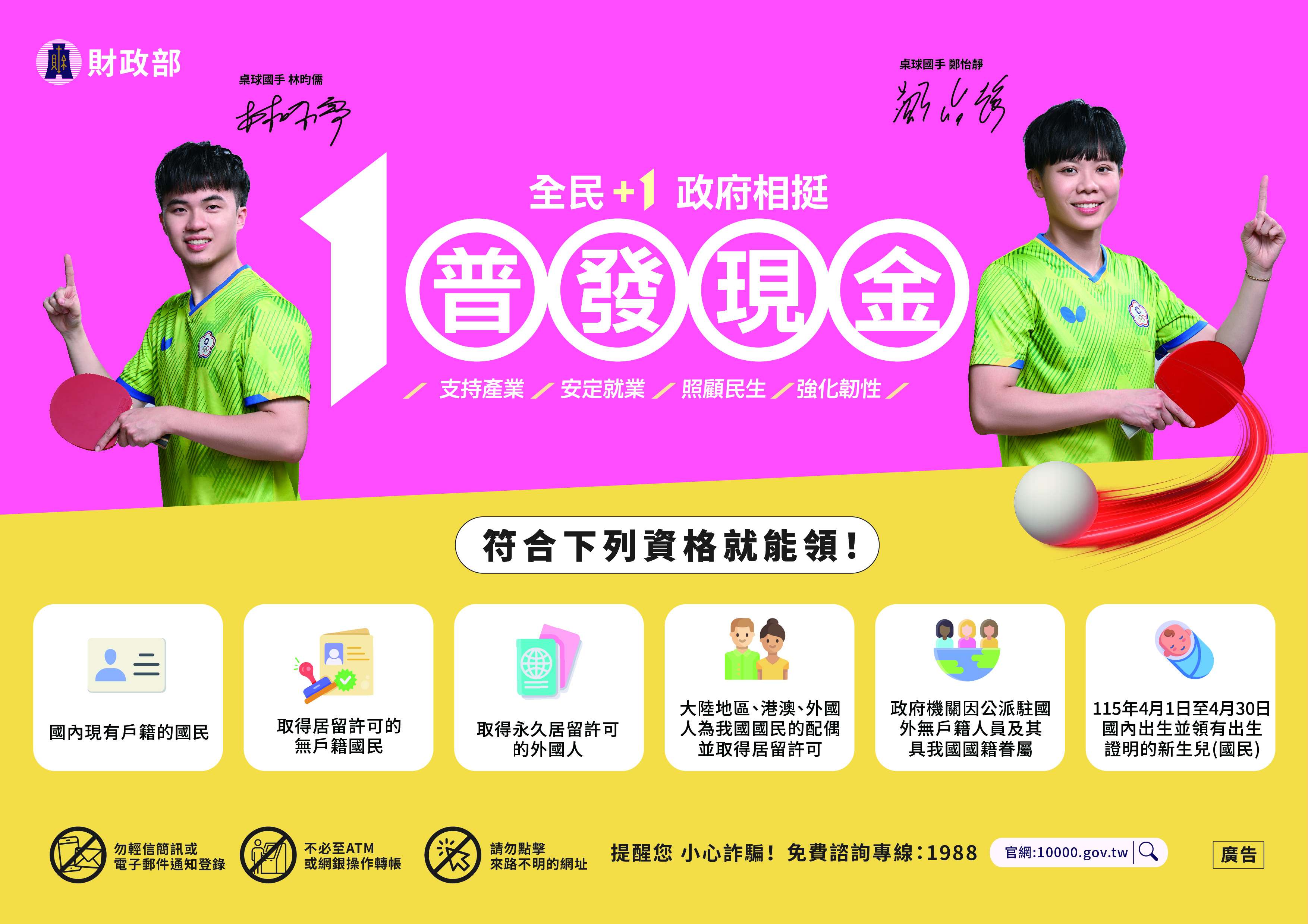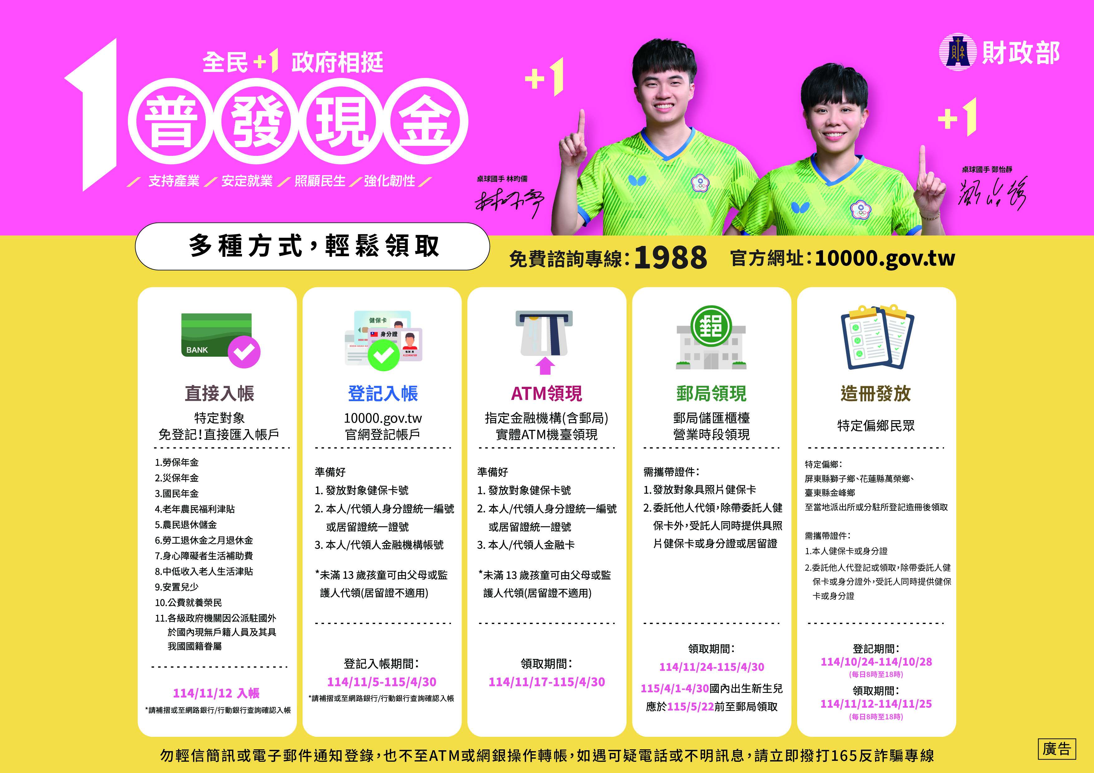 主旨:「全民+1 政府相挺」普發現金領取及防詐事宜