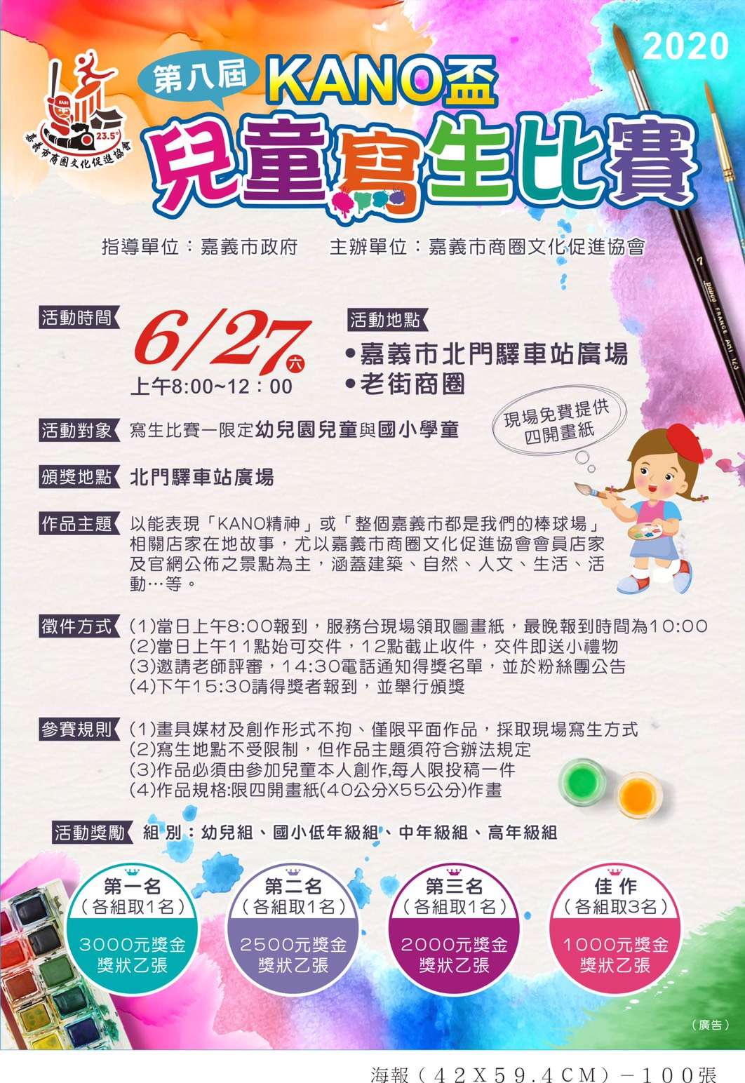 4、作品規格:限四開畫紙(40公分*55公分)。