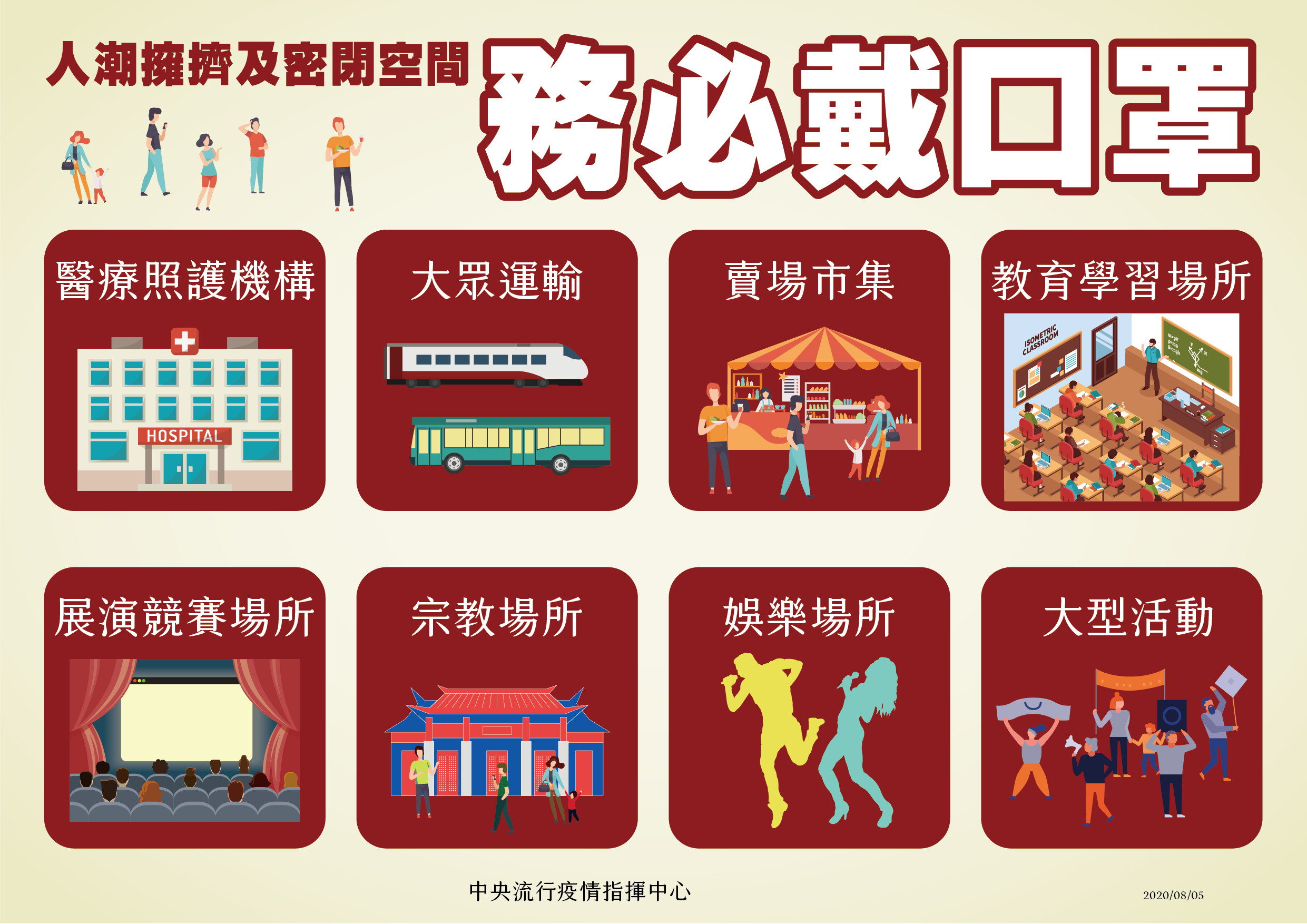 五、 檢附嚴重特殊傳染性肺炎中央流行疫情指揮中心109年8月5日公告8大場所圖檔(如附件)提供參酌。