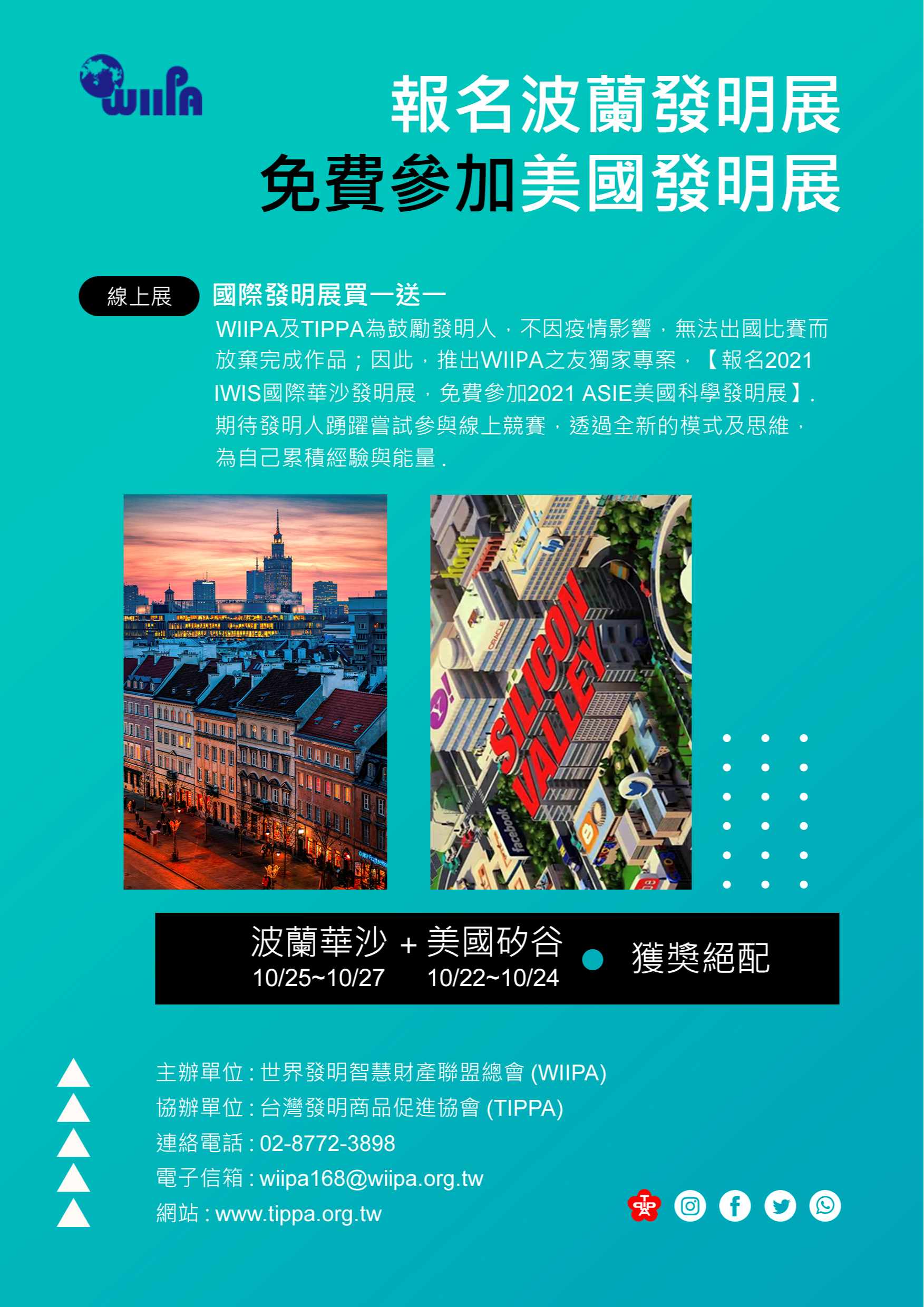 主旨:「2021國際華沙發明展-波蘭(IWIS)」補助專案,敬請貴校優秀學子踴躍報名。