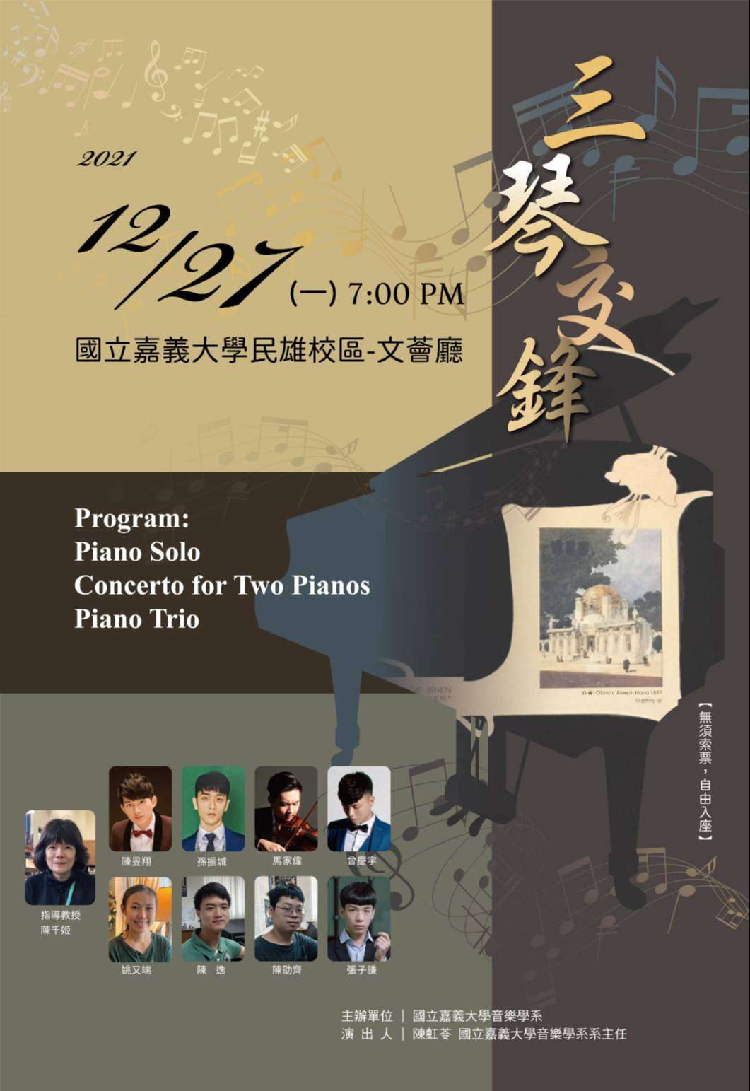 嘉義大學音樂系於12月27日舉辦「三琴交鋒」音樂會