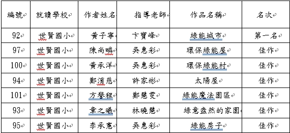 嘉義市110年能源主題「綠能城市」立體創意作品競賽得獎名單