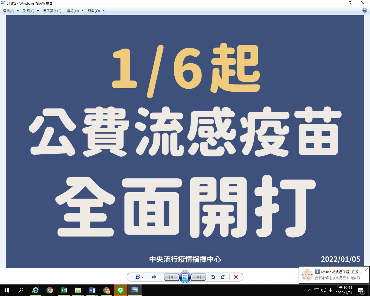自1月6日起,公費流感疫苗開放全民接種,疫苗用完為止,為提升保護力,請儘速攜帶健保卡前往流感疫苗合約醫療院所或衛生所施打。嘉義市長黃敏惠關心您