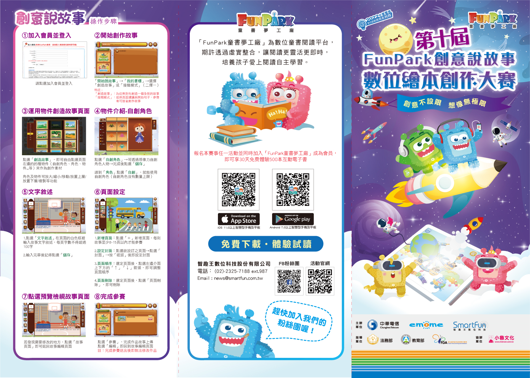 一、旨揭活動為教育部與中華電信智趣王數位科技股份有限公司合作辦理,由廠商建置線上創作平臺提供繪本素材,鼓勵國小學童發揮想像力並展現口語表達能力,完成獨一無二的原創故事數位繪本。