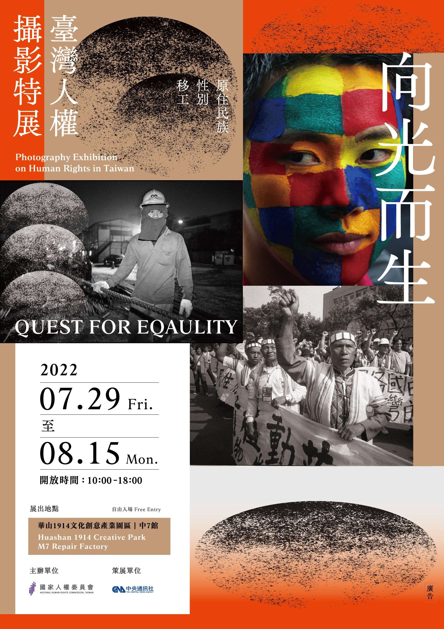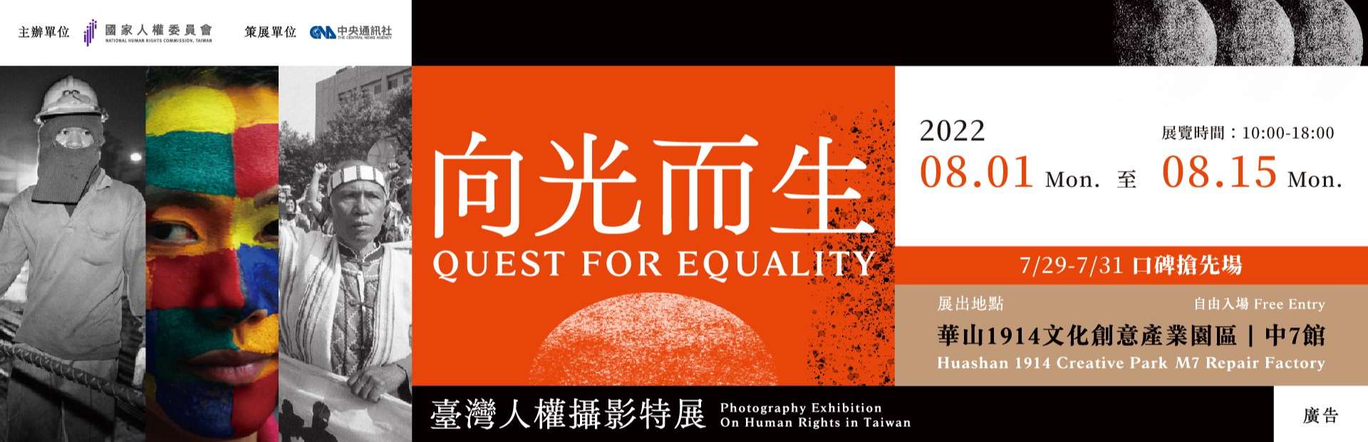 二、該展覽期間自111年8月1日起至8月15日止(7月29日至7月31日口碑搶先場),每日上午10時至下午6時,於華山1914文化創意產業園區中7館辦理,全場免費參觀。