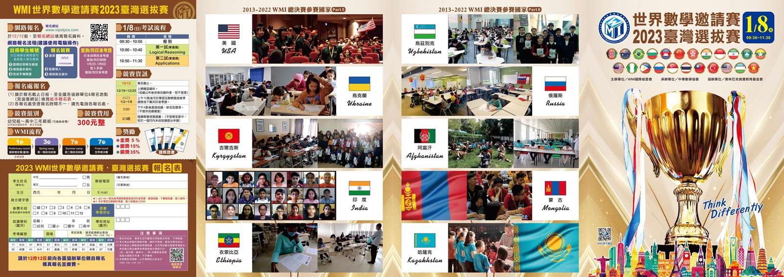 三、「WMI 世界數學邀請賽-2023 臺灣選拔賽」,凡就讀臺灣各縣市之公私立幼兒園至高中三年級學生之我國籍在學學生,均可報名參加,歡迎愛好數學的學生們踴躍報名,一同響應,為台灣爭取榮耀。