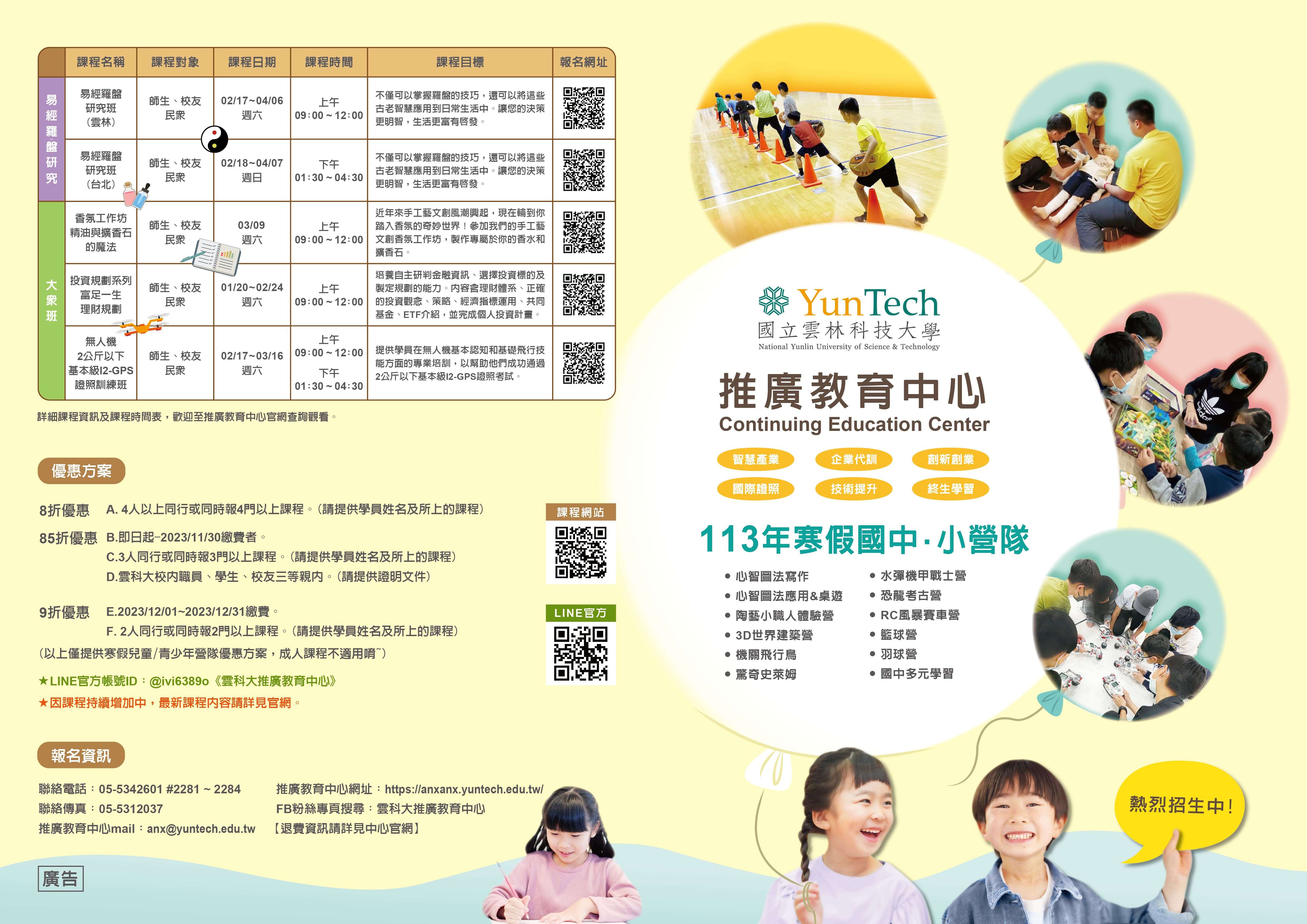 三、課程洽詢電話:05-5342601,分機2281-2284。