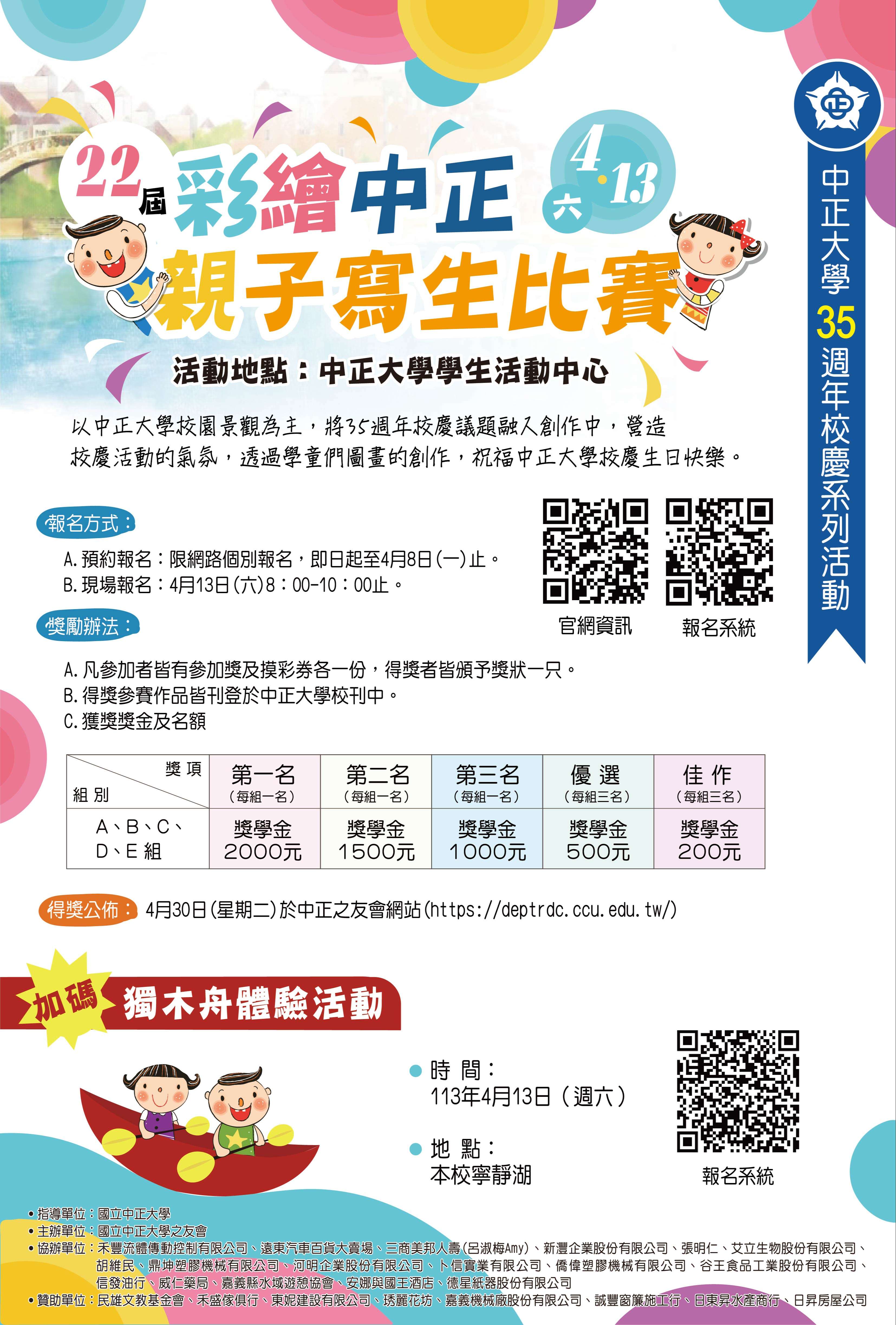 二、謹訂於113年4月13日(六)上午8時,假本校學生活動中心辦