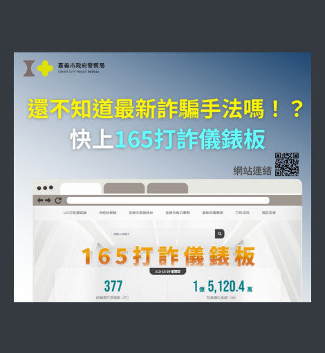 二、因應中央推動修訂打詐新四法,中央每日於「內政部警政 署165打詐儀錶板」公布詐騙數據及案例,民眾得即時瀏覽 各地方詐騙危害狀況,希望透由全民重視詐欺案件,提升 民眾防詐知能;另該局以本市受理「真實詐騙案例」為題 材製作相關防詐、識詐圖文並彙整識詐短影音,請貴校協 助利用School+APP、電子看板、電視牆、學校網站之「反 詐專區」或「最新消息」發布附件影音圖文,並請貴校共同協助轉發分享及宣導,並將打詐儀錶板網頁連結 (https://165dashboard.tw)放置於官網首頁明顯處或打 詐專區,以提升全民防詐意識作為