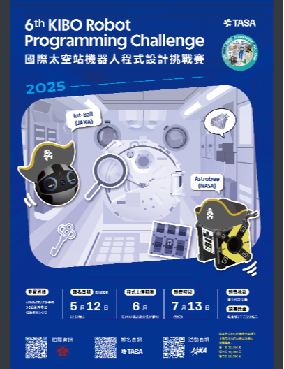 主旨:國家太空中心「第六屆國際太空站 KIBO 機器人程式設計挑戰 賽」活動報名即日起至2025年05月12日止,請惠予協助公 告活動海報周知,請查照。